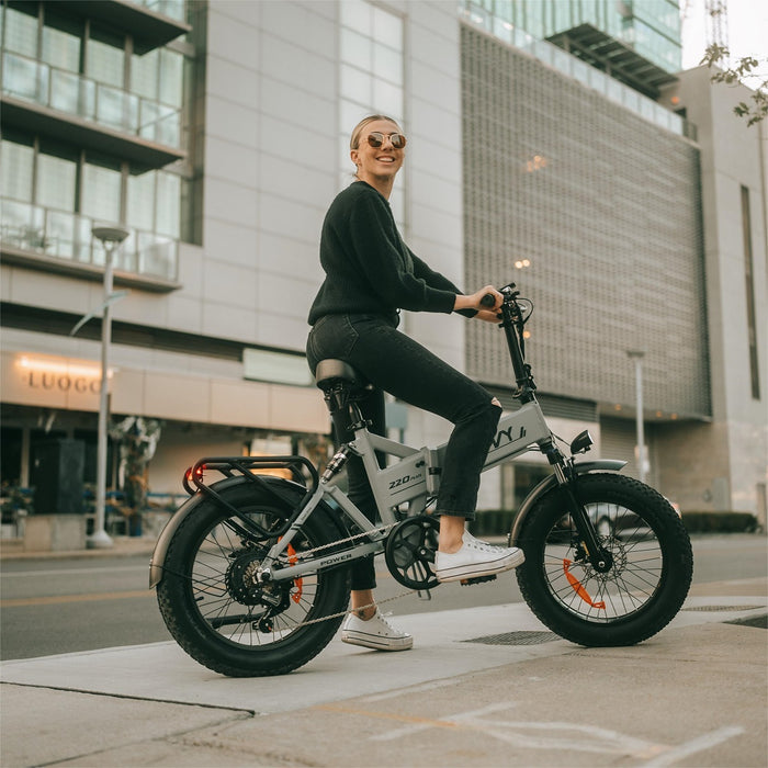 Unsere E-Bikes sind brandneu und werden für einen einfachen Versand zusammengefaltet geliefert. Und mit einem Montagegrad von 85% können Sie alles leicht zusammenbauen. Nach dem Auspacken müssen Sie nur noch die Pedale montieren und den Lenkerwinkel an Ihre Körpergröße und Ihren Fahrstil anpassen. Das ist ein schneller und problemloser Prozess, mit dem Sie im Handumdrehen losfahren können.